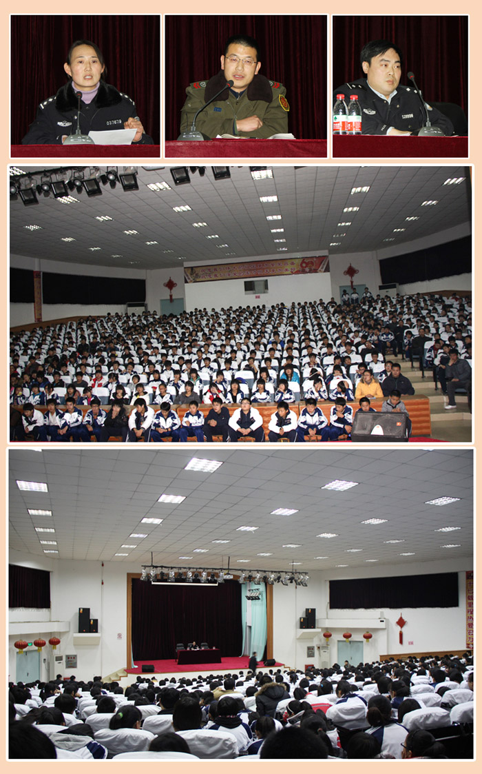 為進(jìn)一步促進(jìn)平安和諧校園建設(shè),增強(qiáng)廣大學(xué)生的安全意識,提高同學(xué)們在日常生活中的法制觀念和突發(fā)事件中的自護(hù)自救能力,12月8日晚,我校邀請邱慧莉、孫衛(wèi)平、徐志剛?cè)痪僭趫蟾鎻d為初、高中師生進(jìn)行交通、消防、法制安全教育的培訓(xùn)。
