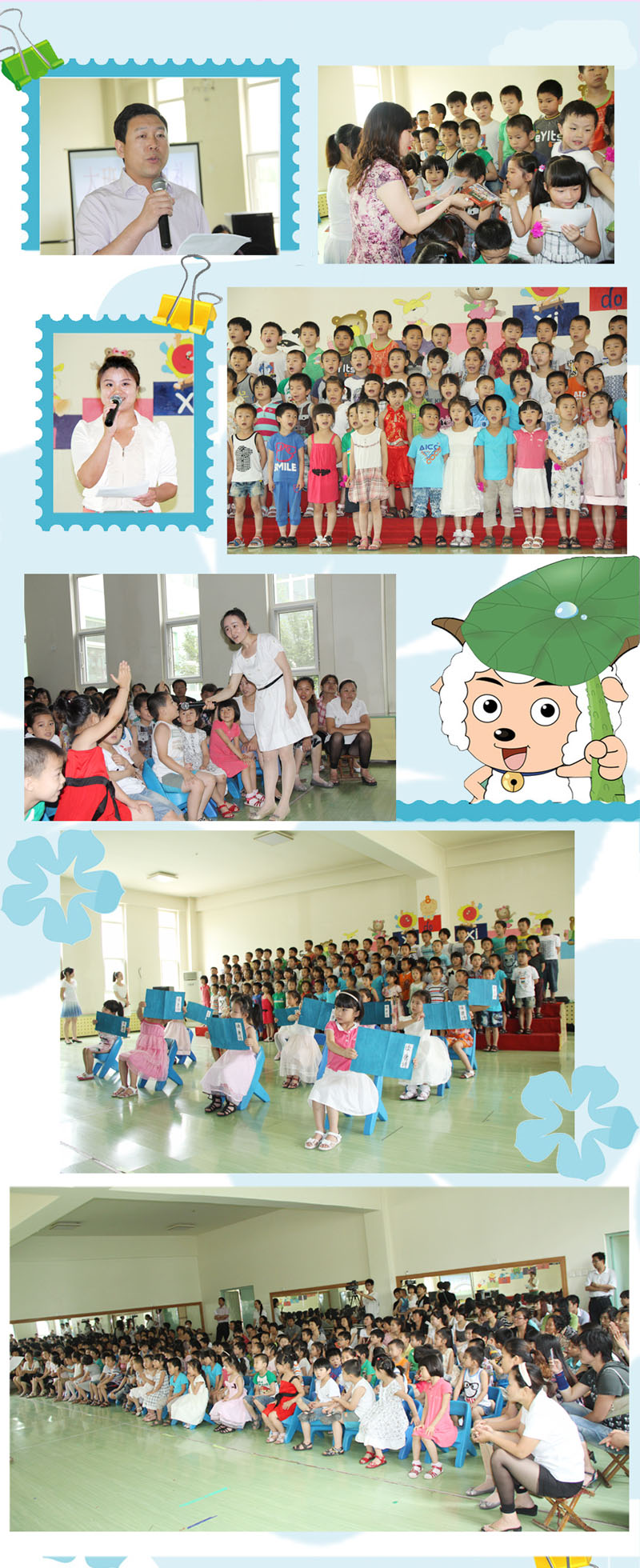 上午九點(diǎn)二十,活動(dòng)正式開始,首先由教師代表王琳和家長(zhǎng)代表綠泡泡班劉樂言的爸爸發(fā)言;然后進(jìn)行了經(jīng)典文化的展示,其中包括看圖說寓言、聽意思說成語和唐詩聯(lián)唱三個(gè)部分的內(nèi)容,孩子們對(duì)中華經(jīng)典文化的熱愛和激烈的搶答,贏得了家長(zhǎng)的陣陣掌聲;接下來,孩子們齊誦《畢業(yè)詩》,齊唱《畢業(yè)歌》、《不老的老師》、《老師,讓我親親您》等歌曲,那種成長(zhǎng)的自豪和對(duì)老師、幼兒園的留戀溢于言表,許多孩子和家長(zhǎng)的眼睛里都噙滿了淚花。最后,園長(zhǎng)和各班老師為幼兒頒發(fā)畢業(yè)照片,大班畢業(yè)典禮在依依惜別聲中拉下了帷幕。