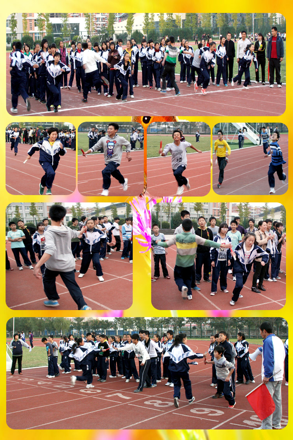 為豐富學(xué)生課余生活,增強(qiáng)班級(jí)凝聚力,活躍校園文化氛圍,10月25—27日下午,初中部迎面接力賽在學(xué)校田徑場舉行,七、八、九三個(gè)年級(jí)組分別在三天當(dāng)中開展了比賽。經(jīng)過激烈的角逐,七年級(jí)5班、8班、7班、1班,八年級(jí)3班、5班、6班、1班,九年級(jí)5班、6班、7班、8班分別獲得各年級(jí)組一、二、三、四名。