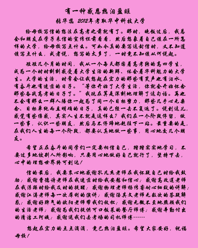 2012屆學(xué)子來(lái)信系列報(bào)道之十一