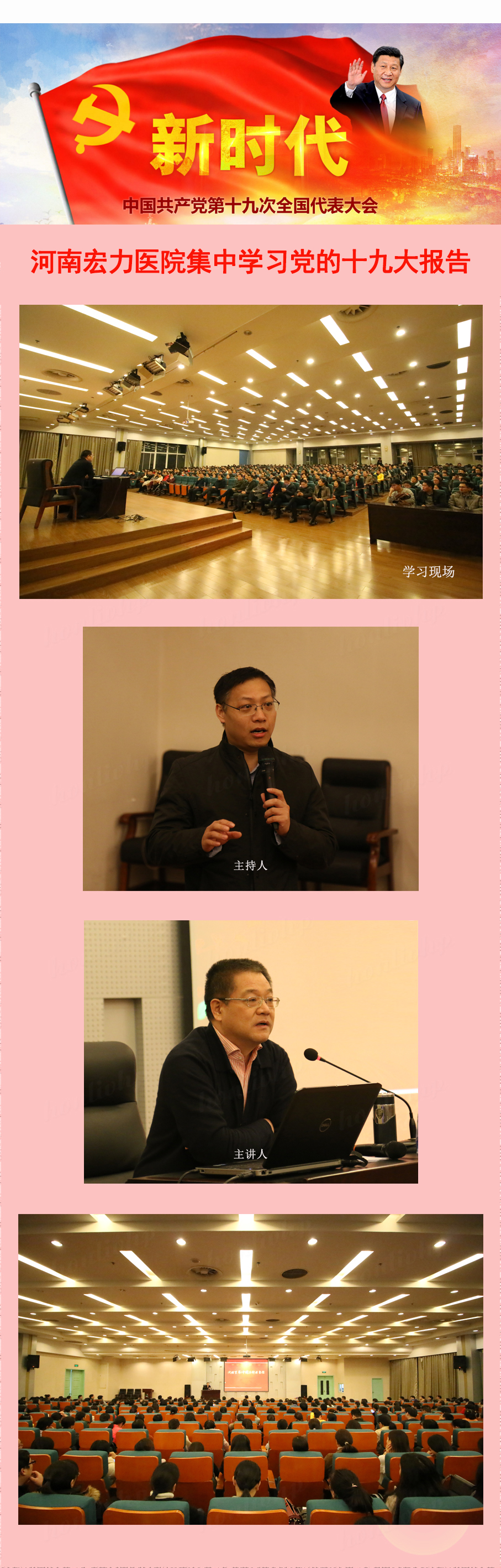 為學(xué)習(xí)好、宣傳好、貫徹好中共十九大會議精神,河南宏力醫(yī)院、醫(yī)院黨支部特舉辦了此次集中學(xué)習(xí)。講座在熱烈的掌聲中結(jié)束,收到了良好的效果。