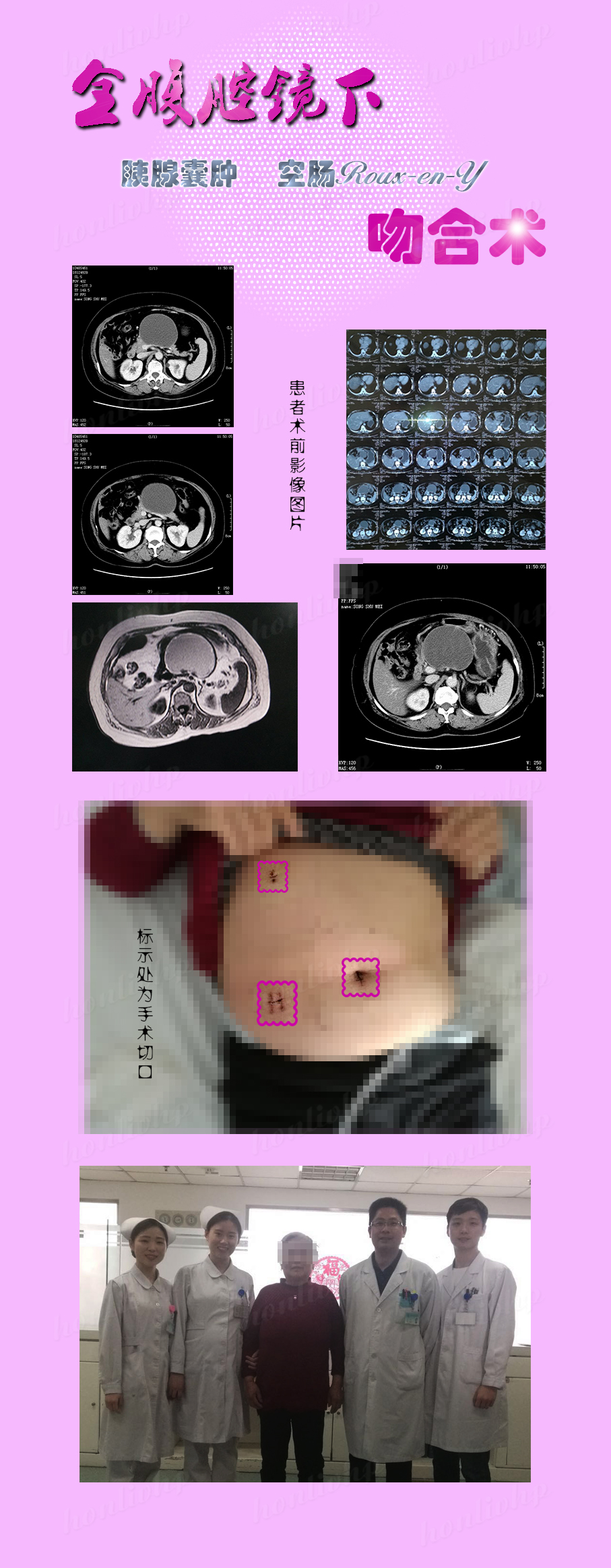 近日,河南宏力醫(yī)院胃腸肝膽外科再次完成一例復(fù)雜的全腹腔鏡下胰腺囊腫空腸Roux-en-Y吻合術(shù),手術(shù)順利、術(shù)后病人恢復(fù)滿意、順利出院。