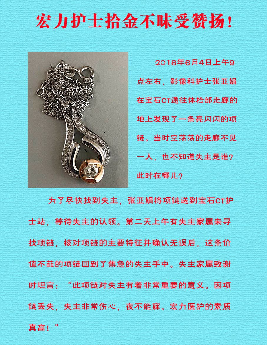 河南宏力醫(yī)院護士拾金不昧受贊揚!