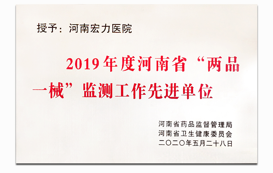 河南宏力醫(yī)院獲2019年度省“兩品一械”監(jiān)測工作先進單位