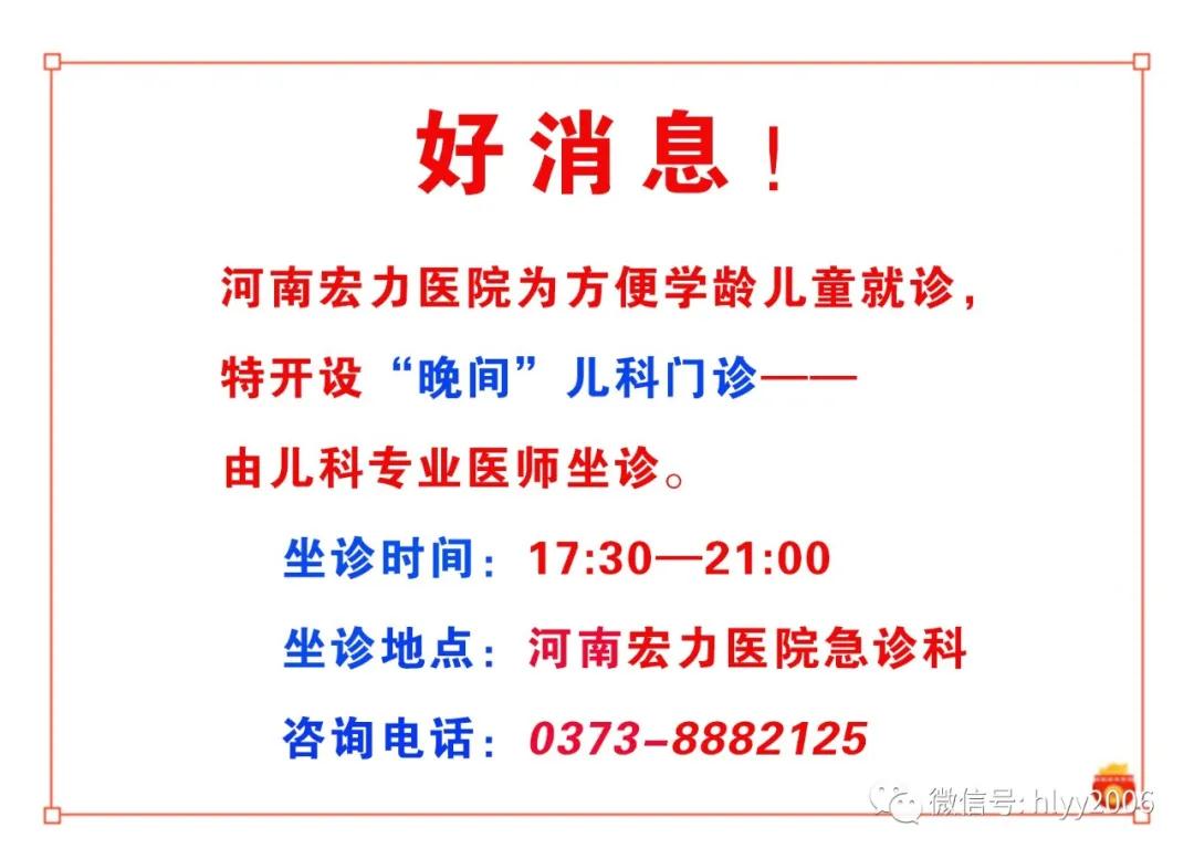河南宏力醫(yī)院開設(shè)【晚間】兒科門診!